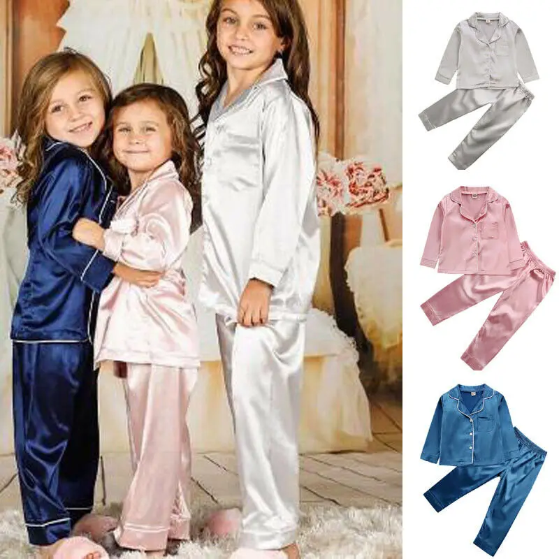 Good Price for Toddler Baby Kids Girls Satin Pajamas Set Long Sleeve Button-Down Sleepwear PJs /BY